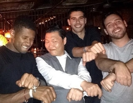 [아시아경제 온라인이슈팀] 팝가수 어셔의 말춤 인증샷이 공개돼 화제가 되고 있다.최근 한 온라인 커뮤니티 게시판에는 '싸이 어셔와 함께 말춤을'이라는 제목으로 한 장의 사진이 공개됐다.이 사진은 지난 16일(한국시간) 미국 뉴욕의 클럽 '서클'에서 촬영한 것으로, 어셔 뿐만 아니라 팝가수 저스틴 비버의 제작자 스쿠터 브라운 등도 싸이와 함께 말춤을 췄다.사진에는 어셔가 싸이와 함께 말춤 포즈를 취하고 있는 모습이 담겨 있다. 유쾌한 표정의 어셔와 익살맞은 자태의 싸이는 꽤 즐거운 시간을 보내고 있는 듯하다.이날 싸이는 "스쿠터에게 소개받은 또 한명의 친구가 있다"며 "우리가 흔히 한인타운이라고 말하는 곳에 어셔가 왔다"라며 어셔를 소개했다. 한편 싸이는 어셔와 오는 21일과 22일 양일간 미국 라스베이거스에서 열리는 '아이 하트 라디오뮤직(iHeartRadio Music)' 페스티벌에 참가할 예정이다.온라인이슈팀 <ⓒ세계를 보는 창 경제를 보는 눈, 아시아경제(www.asiae.co.kr) 무단전재 배포금지>