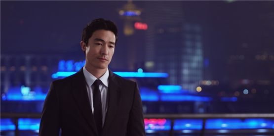 Daniel Henny poses in a black suit during the shooting of his latest comedy film "Shanghai Calling," which has not set its local opening date. [The official page of "Shanghai Calling" on Korean portal website Daum]