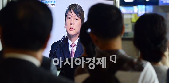 [아시아경제 정재훈 기자] 안철수 서울대학교 융합과학기술대학원 원장이 18대 대선 출마를 공식 선언한 19일 오후 서울역에 설치된 TV 앞에서 시민들이 걸음을 멈추고 안철수 원장의 선거 출마 선언을 지켜보고 있다. 정재훈 기자 roze@<ⓒ세계를 보는 창 경제를 보는 눈, 아시아경제(www.asiae.co.kr) 무단전재 배포금지>
