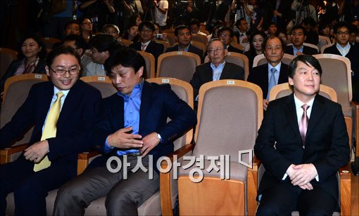 [사진공동취재단] 안철수 서울대 융합과학기술대학원장이 19일 서울 충정로 구세군아트홀에서 대선출마 선언 기자회견장으로 입장해 참석자들과 자리에 앉고 있다.윤동주 기자 doso7@<ⓒ세계를 보는 창 경제를 보는 눈, 아시아경제(www.asiae.co.kr) 무단전재 배포금지>