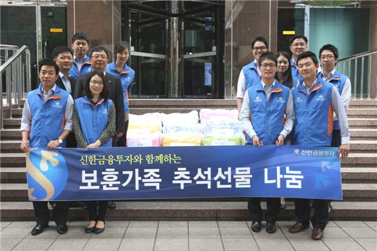 [아시아경제 송화정 기자]신한금융투자는 26일 강서구, 양천구, 영등포구에 거주하는 저소득 보훈가족 200여 명에게 사랑의 쌀, 이불, 방한조끼 등 후원물품 및 후원금을 전달했다. 이번 행사는 서울지방보훈청의 협조로 신한금융투자 임직원들이 영등포구 등 지원가정을 직접 찾아가 후원물품 등을 전했다. 신한금융그룹의 '따뜻한 추석맞이' 나눔행사의 일환으로 기획된 이번 지원은 민족의 큰 명절인 한가위 연휴 동안 상대적으로 소외된 이웃들의 마음을 조금이나마 위로하고자 마련됐다. 신한은행은 소외 아동들을 위한 '추석 선물꾸러미' 전달행사를, 신한카드는 소아암으로 고생하는 어린이들을 위해 항균용품 전달행사를 진행했으며 신한생명은 독거노인들을 위한 송편나눔활동을 실시했다.이번 행사를 총괄하는 신한금융투자 남궁훈 경영지원본부장은 "기업의 사회적 책임을 다하기 위해 지역사회에 대한 관심을 지속적으로 높여 나가겠다"고 밝혔다. 송화정 기자 pancake@<ⓒ세계를 보는 창 경제를 보는 눈, 아시아경제(www.asiae.co.kr) 무단전재 배포금지>