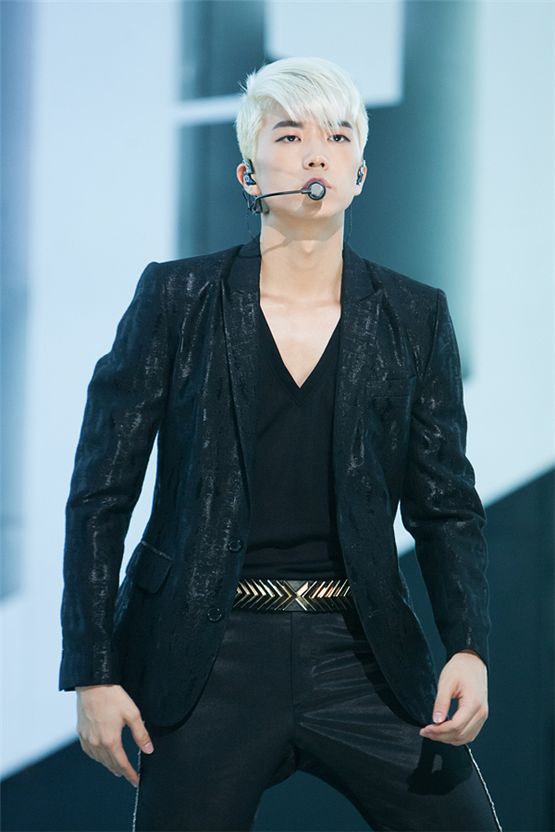 2PM member Jang Woo-young, who has recently been promoting his solo album, poses on Mnet "M!CountDown" stage in a picture provided by CJ E&M on October 2, 2012. [CJ E&M]