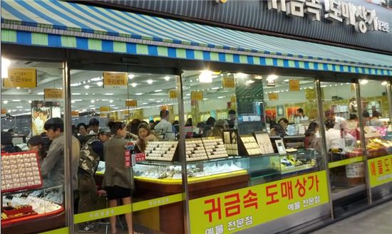 ▲5일 종로3가 귀금속전문점은 예물하려는 고객들로 북적이고 있다. 최근에는 다이아몬드 크기는 점점 줄이고 목걸이, 귀걸이, 반지 세트 대신 커플링으로 대체하는 등 예물에도 간소화 바람이 불고 있다.