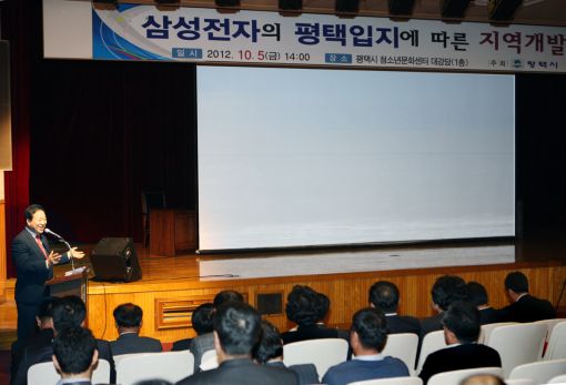 【평택=이영규 기자】삼성전자가 계획대로 평택시에 입주할 경우 7만1000여 명의 일자리가 새로 생기고, 지역 내 생산 파급효과도 13조 원을 웃돌 것으로 분석됐다. 삼성전자는 오는 2016년까지 평택 고덕산업단지에 총 100조 원을 들여 공장 등을 짓기로 하고 지난 7월 말 경기도 등과 토지 분양계약을 체결했다. 평택시가 지난 5일 평택시청소년문화센터 대강당에서 개최한 '삼성전자의 평택입지에 따른 지역개발 방안' 세미나에서 이원빈 대통령직속 지역발전위원회 정책연구관은 '평택의 산업구조변화 전망과 발전전략' 주제발표에서 이와 같이 주장했다. 이 정책연구관은 우선 "삼성전자 설비투자에 따른 파급효과를 산업연관모형을 이용해 추정한 결과 순투자액 100조 원 투자시 전국적으로 생산 189조1314억 원, 부가가치 65조 250억 원, 고용 127만5356명이 창출될 것"이라고 예상했다. 그는 이어 "권역별로 보면 수도권에 미치는 파급효과가 가장 클 것"이라며 "특히 평택지역의 파급효과는 생산 13조1221억 원, 부가가치 4조886억 원, 신규고용 7만1922명이 창출될 것"이라고 덧붙였다. 그는 따라서 평택시는 도시 발전모델로 창조도시(Creative City)를 조성할 필요가 있다고 주문했다.