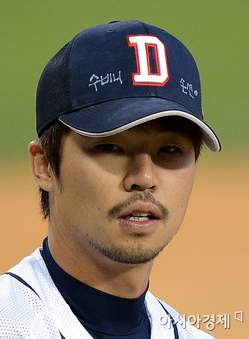 [아시아경제 정재훈 기자] 9일 오후 잠실야구장에서 열리는 '2012 팔도 프로야구 준플레이오프 두산 베어스와 롯데 자이언츠의 2차전 경기에 앞서 오재원이 정수빈과 손시헌의 별명이 적힌 모자를 쓰고 훈련을 하고 있다.정재훈 기자 roze@<ⓒ세계를 보는 창 경제를 보는 눈, 아시아경제(www.asiae.co.kr) 무단전재 배포금지>