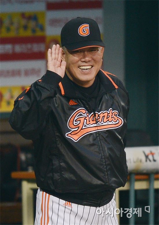 [아시아경제 정재훈 기자] 9일 오후 잠실야구장에서 열리는 '2012 팔도 프로야구 준플레이오프 두산 베어스와 롯데 자이언츠의 2차전 경기에 앞서 양승호 롯데 감독이 맞은편 벤치를 향해 손을 흔들고 있다. 정재훈 기자 roze@<ⓒ세계를 보는 창 경제를 보는 눈, 아시아경제(www.asiae.co.kr) 무단전재 배포금지>