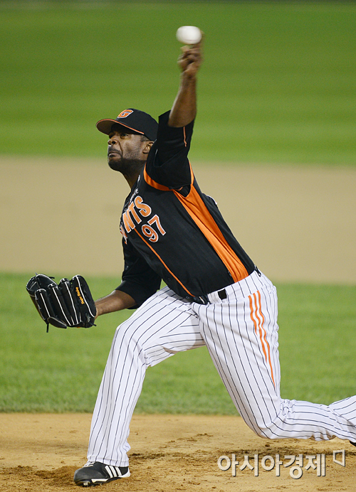 [아시아경제 정재훈 기자] 9일 오후 잠실야구장에서 열린 '2012 팔도 프로야구 준플레이오프 두산 베어스와 롯데 자이언츠의 2차전 경기에서 롯데 선발투수 유먼이 역투하고 있다.정재훈 기자 roze@<ⓒ세계를 보는 창 경제를 보는 눈, 아시아경제(www.asiae.co.kr) 무단전재 배포금지>