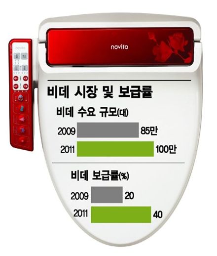 9일 업계에 따르면 중견 위생도기ㆍ비데업체들이 저가형 제품과 공격적인 마케팅으로 시장 확대에 주력하고 있다. 로얄&컴퍼니(구 로얄TOTO)는 강남구 학동에 개설한 복합문화공간 '갤러리 로얄'을 앞세워 고객 대상 마케팅을 확대해나간다. 그동안 건설사 위주로 영업을 진행해왔던 로얄&컴퍼니는 향후 비데 사용 고객들을 대상으로 인테리어 강좌ㆍ유료 강의를 진행하겠다는 계획이다. 대림바스는 일체형 비데 업체 중에서는 유일하게 렌탈 서비스에 뛰어들어 차별화를 시도하고 있다. 설치형 전자식 비데와 달리 일체형 비데는 위생도기가 함께 설치돼 가격이 비싼 편이지만 렌탈을 통해 가격을 낮춰 실속파 소비자들에게 각광받고 있다. 비데업계 2위 업체인 콜러노비타도 지난달 출시된 신제품의 TV광고를 집행하는 한편, 이달 말까지 전국 대리점에서 동시 세일 행사를 진행할 계획이다. 쿠팡, 티켓몬스터 등 소셜커머스를 이용해 '저가 공세'를 펼치는 것도 마다하지 않는다. 로얄&컴퍼니는 지난 5월 쿠팡을 통해 40만원에 가까운 비데 세트를 53% 저렴한 18만원대에 판매했다. 대림바스도 자사 모델 'DST-300'과 'DST-330' 2종을 기존 대비 60% 할인한 월 9900원에 염가 판매했다. 유스파 역시 티켓몬스터를 통해 51% 할인된 가격에 자사 제품을 판매했다. 자사 고객 확보와 타사 고객 유치를 위한 보상판매도 진행된다. 콜러노비타가 지난달 타사의 렌탈 고객을 대상으로 노비타 비데를 50% 할인된 가격에 보상 판매했고, 로얄&컴퍼니도 비데 신제품 출시 기념으로 반값에 보상판매를 진행했다. 업계에서는 건설경기 침체로 인해 비데업체의 3대 시장(일반판매,렌탈,건설) 중 하나인 건설 특판시장이 축소되자 일반 판매ㆍ렌탈시장에서의 싸움이 격화된 것으로 해석하고 있다. 게다가 지난달 업계 1위인 웅진코웨이가 '웅진 사태'로 발목이 잡히면서 마케팅전은 한층 치열해질 전망이다. 비데 업계 관계자는 "아직 (웅진사태가) 초기인 만큼 웅진코웨이 점유율에 큰 변화는 없다"며 "하지만 향후 웅진 영업조직에 변화가 일어날 것으로 보고 동향을 주시 중"이라고 말했다. 국내 비데 시장은 지난 1990년대 처음 생겨난 이후 연평균 10%의 성장을 기록하며 꾸준히 성장하고 있다. 2009년 85만대였던 시장 규모는 현재 연간 100만대, 3000억원 규모로 확대됐다. 웅진코웨이가 50%, 콜러노비타가 30%의 시장점유율을 확보 중이다.이지은 기자 leezn@<ⓒ세계를 보는 창 경제를 보는 눈, 아시아경제(www.asiae.co.kr) 무단전재 배포금지>