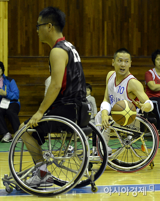 [고양=아시아경제 정재훈 기자] 고양시를 비롯해 경기도 일대에서 제32회 전국장애인체육대회가 열리고 있는 가운데 10일 오후 경기 고양시 홀트장애인종합체육관에서 열린 서울시와 대전시의 휠체어 농구 8강전에서 서울 오동석이 패스할 곳을 찾고 있다.정재훈 기자 roze@<ⓒ세계를 보는 창 경제를 보는 눈, 아시아경제(www.asiae.co.kr) 무단전재 배포금지>