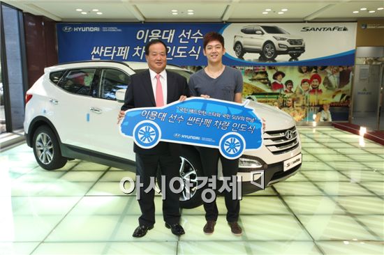 [아시아경제 조슬기나 기자]배드민턴 스타 이용대 선수가 신형 싼타페를 탄다.현대자동차(회장 정몽구)는 11일 계동사옥에서 김충호 현대차 사장 및 임직원들이 참석한 가운데 배드민턴 스타 이용대 선수와 구입차량 인도식 행사를 가졌다고 밝혔다. 이용대 선수는 2008년 베이징올림픽에서 금메달을 획득해 실력과 세련된 외모를 겸비한 대한민국 대표 스포츠 스타로 떠올랐으며, 이후 각종대회에서 뛰어난 성적을 거둬 정재성 선수와 함께 배드민턴 남자복식에서 세계랭킹 1위에 올라있다. 이번 행사는, 신형 싼타페에 지속적인 관심을 가졌던 이용대 선수가 최근 구입 결정을 하면서 성사됐다. 이용대 선수가 선택한 싼타페는 2.0 익스크루시브(Exclusive) 트림으로 블루링크 서비스가 지원되는 스마트 내비게이션, 와이드 파노라마 썬루프 등 다양한 편의사양이 적용된 차량이다. 이용대 선수는 “강렬한 외관과 고급스러운 실내 디자인, 탁월한 주행성능이 매우 인상적이었다”며 “신형 싼타페를 직접 타보니 모든 면이 만족스러워 고민할 필요 없이 구입을 결정했다”고 밝혔다. 한편 지난 5월 출시된 신형 싼타페는 뛰어난 상품성을 바탕으로 6월 한 달간 국내에서 1만423대가 판매돼 SUV 최초로 월 1만대 판매를 돌파하는 신기록을 달성했고, 출시 5개월만인 9월까지 총 3만2000여 대가 판매되며 대한민국 대표 SUV 자리를 굳게 지키고 있다. 조슬기나 기자 seul@<ⓒ세계를 보는 창 경제를 보는 눈, 아시아경제(www.asiae.co.kr) 무단전재 배포금지>