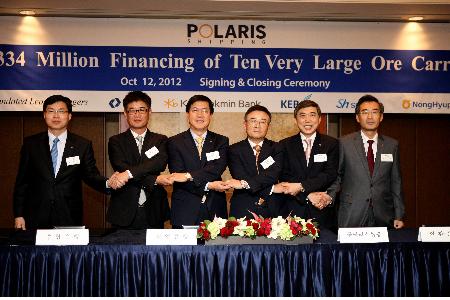 [아시아경제 임혜선 기자]KDB산업은행은 국내 중견 우량해운사인 폴라리스쉬핑(주)의 30만t급 철광석 운반선 10척에 대한 3억3400만달러의 금융주선에 성공했다.산업은행은 12일 오전 11시 서울 중구 롯데호텔에서 회사 및 외환은행, 국민은행, 농협, 수협 등 대주단 관계자가 참여한 가운데 서명식을 가졌다.폴라리스쉬핑은 세계 최대 철광석 생산업체인 브라질 Vale그룹과 12년간의 장기운송계약이 체결된 30만t급 철광석 운반선(VLOC: Very Large Ore Carrier) 10척 운항을 통하여 향후 약 40억달러에 달하는 외화를 획득할 수 있을 전망이다.□ KDB산업은행 성장금융부문 성기영 부행장은 "세계적인 경기침체로 어려움을 겪고 있는 해운시황속에서도 대규모 금융주선에 성공함으로써 세계 5위인 국내 해운업에 대한 든든한 조력자이자 동반자 역할을 수행할 수 있게 됐다"고 말했다. 임혜선 기자 lhsro@<ⓒ세계를 보는 창 경제를 보는 눈, 아시아경제(www.asiae.co.kr) 무단전재 배포금지>