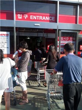 미국계 대형할인점 코스트코는 14일에도 영업을 강행했다. 이날 전국 375개 국내 대형마트 중 11.2%에 해당하는 42곳이 문을 닫았다.