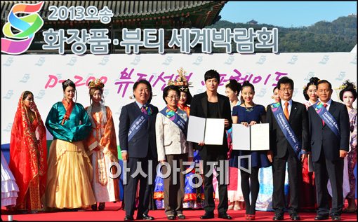[아시아경제 최우창 기자] 15일 서울 광화문 광장에서 열린 '2013 오송화장품-뷰티세계박람회 D-200일 뷰티선언'에서 홍보대사로 위촉된 탤런트 강지환과 박은혜가 이시종, 김화중 공동위원장을 비롯한 참석자들과 기념사진 촬영을 하고 있다.최우창 기자 smicer@<ⓒ세계를 보는 창 경제를 보는 눈, 아시아경제(www.asiae.co.kr) 무단전재 배포금지>