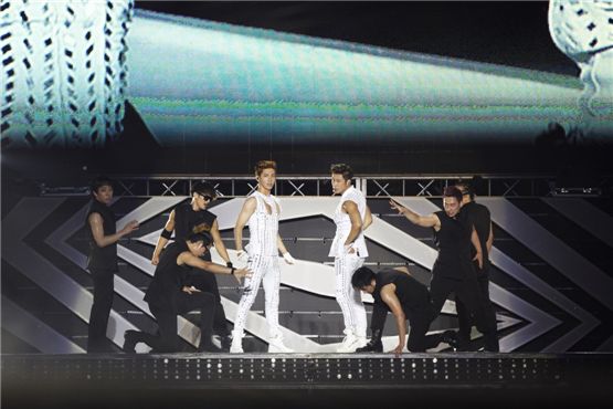 TVXQ!'s Max Changmin (left) and U-know Yunho pose at "SMTOWN LIVE WORLD TOUR III in JAKARTA" opened at the Gelora Bung Karno Stadium in Jakarta, Indonesia, on September 22, 2012. [SM Entertainment]