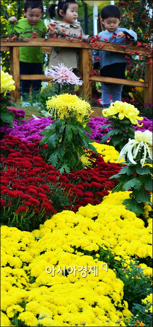 [아시아경제 최우창 기자] 15일 서울 강남구 삼성동 코엑스 동문광장에서 '2012 국화 페스티벌'이 열린 가운데 아이들이 만개한 국화꽃을 바라보고 있다.최우창 기자 smicer@<ⓒ세계를 보는 창 경제를 보는 눈, 아시아경제(www.asiae.co.kr) 무단전재 배포금지>