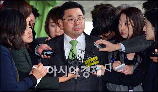 [아시아경제 최우창 기자] 수천억원대 기업어음(CP) 사기 발행 의혹을 받고 있는 LIG그룹 오너 일가가 연이어 검찰 소환조사를 받을 예정인 가운데 17일 서울 서초구 서울중앙지검 에 LIG그룹 구자원 회장(77)의 장남인 구본상 LIG 넥스원 부회장이 출두, 기자들의 질의에 응답하고 있다. 최우창 기자 smicer@<ⓒ세계를 보는 창 경제를 보는 눈, 아시아경제(www.asiae.co.kr) 무단전재 배포금지>