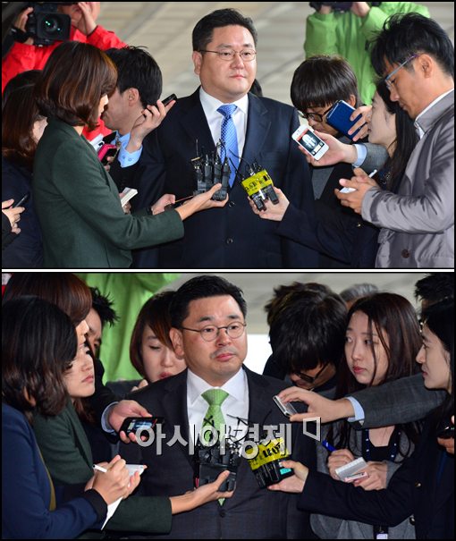 [아시아경제 최우창 기자]수천억원대 기업어음(CP) 사기 발행 의혹을 받고 있는 LIG그룹 오너 일가가 연이어 검찰 소환조사를 받을 예정인 가운데 17일 서울 서초구 서울중앙지검에 LIG그룹 구자원 회장(77)의 차남인 구본엽 LIG건설 부사장(사진 위), 장남인 구본상 LIG 넥스원 부회장이 출두, 기자들의 질문에 입을 다물고 있다.최우창 기자 smicer@<ⓒ세계를 보는 창 경제를 보는 눈, 아시아경제(www.asiae.co.kr) 무단전재 배포금지>