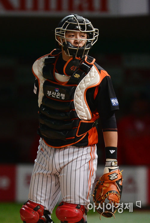 [인천=아시아경제 정재훈 기자] 롯데 강민호가 17일 오후 인천 문학야구장에서 열린 2012 팔도 프로야구 플레이오프 SK 와이번스와 롯데 자이언츠의 2차전에서 선발로 나섰다.정재훈 기자 roze@<ⓒ세계를 보는 창 경제를 보는 눈, 아시아경제(www.asiae.co.kr) 무단전재 배포금지>