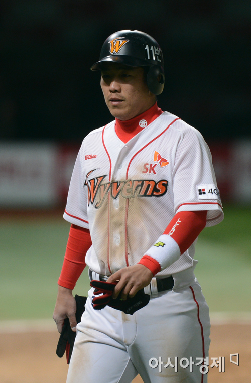 [인천=아시아경제 정재훈 기자] 17일 오후 인천 문학야구장에서 열린 2012 팔도 프로야구 플레이오프 SK 와이번스와 롯데 자이언츠의 2차전 7회말 정근우가 득점을 올리지 못한 채 이닝이 끝나자 아쉬워하고 있다.정재훈 기자 roze@<ⓒ세계를 보는 창 경제를 보는 눈, 아시아경제(www.asiae.co.kr) 무단전재 배포금지>