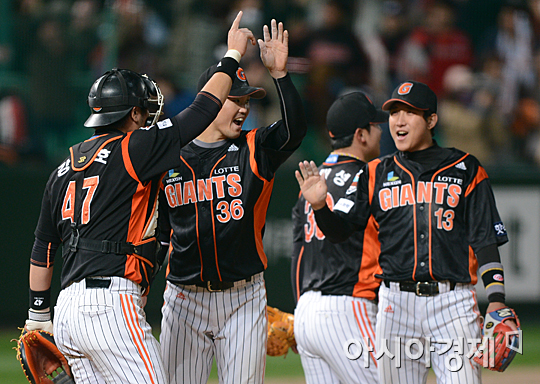 [인천=아시아경제 정재훈 기자] 롯데 자이언츠가 17일 오후 인천 문학야구장에서 열린 2012 팔도 프로야구 플레이오프 SK 와이번스와의 2차전에서 연장 접전 끝에 5:4 승리를 거뒀다.정재훈 기자 roze@<ⓒ세계를 보는 창 경제를 보는 눈, 아시아경제(www.asiae.co.kr) 무단전재 배포금지>