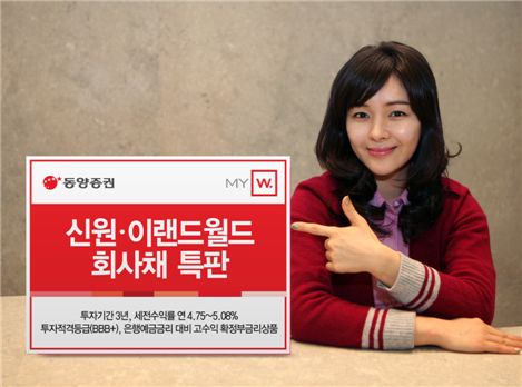 [아시아경제 송화정 기자]동양증권은 18일부터 개인과 일반법인, 지역금융기관 투자자를 대상으로 국내 중견 의류생산전문회사인 신원과 이랜드월드의 회사채를 판매한다. 특판 대상인 '신원107회' 회사채는 만기가 2년 11개월로 세전투자수익률은 연 5.08%다. 3년 만기인 '이랜드월드64회' 회사채의 세전투자수익률은 연 4.75%다. 이자는 3개월마다 지급된다. 발행사인 신원은 장수 패션브랜드를 보유한 업체로 우량 해외 업체와의 꾸준한 사업적 관계를 통해 안정적인 사업성을 유지하고 있다. 이랜드월드는 패션사업과 함께 실질적인 그룹지주회사의 역할을 병행하고 있어 국내브랜드 및 중국 법인 성장에 따른 꾸준한 수익창출 뿐만 아니라 보유 계열사 지분가치 상승효과도 누리고 있다. 최훈근 FICC Products팀장은 "신원과 이랜드월드 모두 적격투자등급인 'BBB+' 등급이면서 개인투자자의 경우 은행예금금리보다 약 1.5~2.0% 이상 수익률면에서 유리하며 지역금융기관의 경우에도 고금리 조선, 해운, 건설업 채권에서 벗어나 안정적인 의류사업을 영위하는 제조업의 채권에 투자할 수 있는 좋은 기회"라고 말했다. 신원107회는 한국기업평가와 한국신용평가로부터 회사채 신용등급 BBB+를 받았으며 이랜드월드64회는 NICE신용평가와 한국신용평가로부터 회사채 신용등급 BBB+를 받았다. 두 상품 모두 최소매수금액은 제한이 없고 한도는 각각 100억원이며 동양증권 전국 지점에서 매수할 수 있다. 문의) 전국 지점 및 고객지원센터(1588-2600)