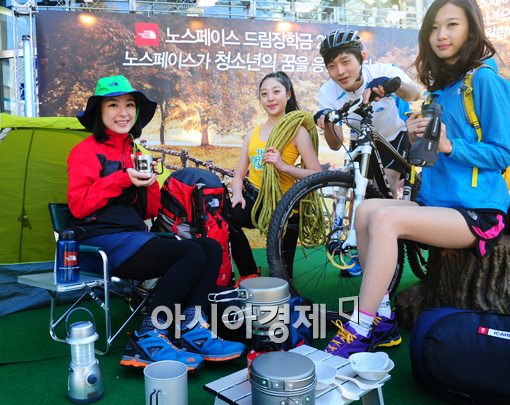 [아시아경제 백소아 인턴 기자] 글로벌 아웃도어 브랜드 노스페이스가 18일 서울 청계 광장에서 노스페이스 드림장학금 2기의 장학생 선발을 알리는 행사를 개최했다. 노스페이스 드림장학금은 각종 스포츠와 아웃도어에 관심이 있거나 이를 통해 꿈을 이루고자 하는 중고등학생 100명을 선발하여 100만원씩의 장학금을 지급하고 멘토링 및 아웃도어 활동 등을 지원하는 프로그램이다. 참가신청은 11월 2일(금)까지 www.neverstopdreaming.co.kr에서 지원서를 다운로드 받아 작성 후 제출하면 된다. 백소아 인턴 기자 sharp2046@<ⓒ세계를 보는 창 경제를 보는 눈, 아시아경제(www.asiae.co.kr) 무단전재 배포금지>