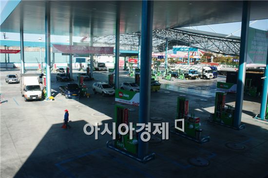 주유소 아래에 묻혀있는 저장탱크 용량도 4만5500드럼에 달한다. ℓ로 치면 910만ℓ다. 기름탱크 60ℓ짜리 승용차 15만1600여대에 기름을 가득 채울 수 있는 양이다. ℓ당 1900원으로 단순 계산하면 싯가 172억9000만원 어치다.주유기 수나 저장탱크 용량으로 볼 때 여느 소형 주유소 100개와 맞먹는다는 게 주유소 측의 설명이다. 인천에서는 물론 전국에서도 유례를 찾기 힘든 규모다.이 주유소가 덩치를 키운 가장 중요한 목적은 '가격파괴'다. 대형화를 통해 이른바 '규모의 경제'를 이뤘다. 주유업계의 '대형마트'라 부를 법하다.지난 7일 현재 이 주유소의 ℓ당 판매단가는 휘발유가 1899원, 경유가 1699원이다. 같은 날 공시된 전국평균 단가는 휘발유 2011원, 경유 1827원이었다. 휘발유는 ℓ당 112원, 경유는 128원이 싸다. 30ℓ를 주유하면 각각 3360원과 3840원을 아낄 수 있다.오일파크에는 모든 주유기가 운전자가 직접 기름을 넣는 '셀프' 식이라 주유원이 없다. 차량 이동 동선을 안내하는 10명 안팎의 인력만 일을 한다.국내 최대규모의 저장탱크도 기름값을 낮추는 요인이다. 가득 채워놓으면 15일 동안 비축이 가능하다. 가격변동에 따라 주유량을 탄력적으로 조정할 수 있는 장점이 크다.여느 주유소에 있기 마련인 세차장도 없다. 가격을 낮춰 운전자에게 단 10원에도 민감하기 마련인 기름값을 내리자는 전략이다.차성환 오일파크 대표는 "최대 규모로 최저가를 실현한다는 하나의 새로운 모델을 만들었다는데 의의가 있다. 고유가 시대에 운전자들에게 어필할 만한 하나의 대안이라고 본다"고 말했다.노승환 기자 todif77@<ⓒ세계를 보는 창 경제를 보는 눈, 아시아경제(www.asiae.co.kr) 무단전재 배포금지>