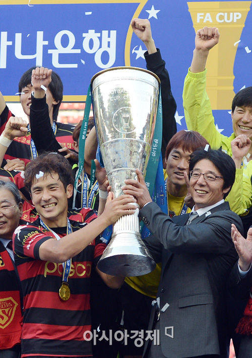 [포항=아시아경제 정재훈 기자] 포항 스틸러스가 20일 오후 포항 스틸야드에서 열린 2012 하나은행 FA컵 결승전에서 연장 후반 박성호의 결승골로 1:0으로 경남FC를 누르고 우승 트로피를 차지했다.정재훈 기자 roze@<ⓒ세계를 보는 창 경제를 보는 눈, 아시아경제(www.asiae.co.kr) 무단전재 배포금지>