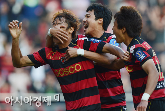 [포항=아시아경제 정재훈 기자] 포항 스틸러스가 20일 오후 포항 스틸야드에서 열린 2012 하나은행 FA컵 결승전에서 연장 후반 박성호의 결승골로 1:0으로 경남FC를 누르고 우승 트로피를 차지했다. 결승골을 터뜨린 박성호의 얼굴을 손으로 가리는 김진용.정재훈 기자 roze@<ⓒ세계를 보는 창 경제를 보는 눈, 아시아경제(www.asiae.co.kr) 무단전재 배포금지>