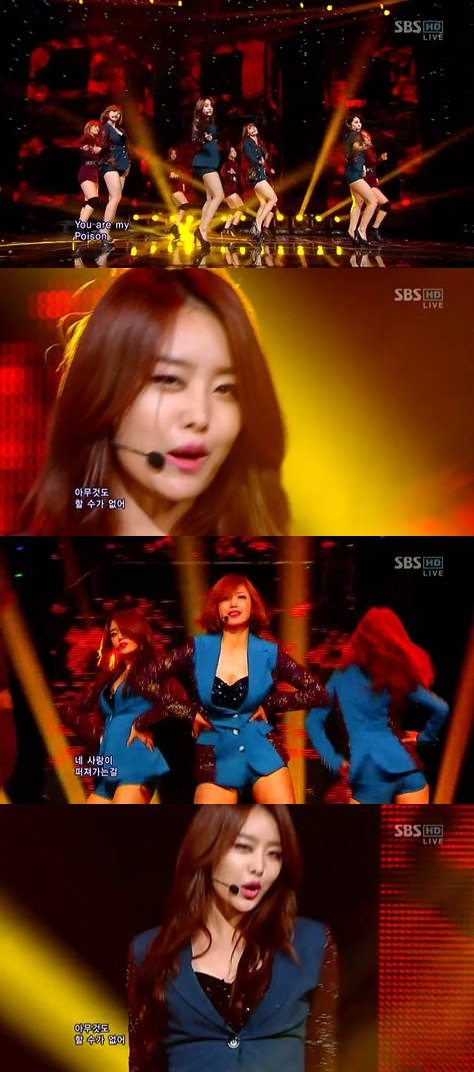 [아시아경제 장영준 기자]걸그룹 시크릿이 아쉬움을 뒤로하고 '굿바이 무대'를 가졌다.21일 방송된 SBS '인기가요'에서는 시크릿이 'POISON(포이즌)'을 열차하며 고별 무대를 선사했다.이날 시크릿은 섹시함이 돋보이는 '포이즌' 안무를 열정적으로 소화하며 굿바이 무대를 아쉬워하는 팬들의 마음을 달랬다.한편 이날 방송에는 케이윌, miss A, FT아일랜드, 시크릿, 에픽하이, G-DRAGON, 동방신기, EXID, 100%, 원더보이즈, 미스터 미스터, BTOB, 쥬얼리, 에일리, 가인, 서인영 등이 출연했다.장영준 기자 star1@<ⓒ아시아경제 & 스투닷컴(stoo.com)이 만드는 온오프라인 연예뉴스>