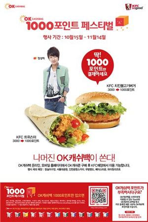[아시아경제 오주연 기자] KFC는 실속 있는 외식기회를 제공하기 위해 OK캐쉬백과 함께 ‘OK캐쉬백 1000포인트 페스티벌’을 진행한다고 22일 밝혔다.이번 행사는 KFC의 인기메뉴 치킨불고기버거, 트위스터 메뉴를 OK캐쉬백 1000포인트에 제공하는 이벤트로 현금이 아닌 포인트 차감으로 3000원 상당의 KFC 제품을 실속 있게 즐길 수 있도록 구성했다.행사는 다음달 14일까지 한달 간 진행되며, 매주 메뉴 별 각 1만개씩 OK캐쉬백 홈페이지(www.okcashbag.com)에서 한정판매로 진행될 예정이다. KFC 관계자는 “이번 행사는 포인트만으로 보다 부담 없고 실속 있게 KFC 메뉴를 즐길 수 있도록 하기 위해 기획했다”며 “앞으로도 직접적인 혜택을 누릴 수 있는 실속형 이벤트를 다양하게 진행해 나갈 예정이다”고 말했다. 오주연 기자 moon170@<ⓒ세계를 보는 창 경제를 보는 눈, 아시아경제(www.asiae.co.kr) 무단전재 배포금지>