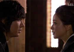 <신의> 21회 SBS 월-화 밤 9시 55분지금까지 <신의>는 원나라에게 대항하는 고려왕으로 성장하는 공민왕(류덕환)을 서사의 중심으로 삼아 역사의식을 극 전반에 두었다. 그러나 이를 가져야 할 인물은 사실 은수(김희선)이다. 본래의 역사를 알고 있는 그녀의 선택에 따라 새로운 미래가 창조될 수 있기 때문이다. 그래서 은수에게 “내 곁에 남아 달라”는 최영(이민호)의 말은 연인의 프러포즈이면서도 역사를 바꿀 수 있겠냐는 대의적 의미가 될 수 있고, “살려내면 안 되는 사람을 살려낸 적 있습니까?”라는 손유(박상원)의 질책은 과거로 온 자신의 존재론적 의미에 대한 질문으로 확장될 가능성이 있었다. 그러나 실존한 인물을 주요한 캐릭터로 설정해 타임 슬립을 소재로 한 다른 사극들과 차별된 역사의식을 보여주려던 <신의>는 결말에 다가서자 여주인공의 역사의식을 사라지게 만든다. 은수가 “내가 사는 세상이 내 세상이지”라는 무책임한 대답을 하는 것처럼, 사랑하는 연인과 현재와 미래에 중대한 영향을 끼칠 변경될 역사에 대한 은수의 고민은 중량감 있게 다뤄지지 않는다. 대신 “고려에서 제일 안전한 곳”인 우달치 부대에서 “신입” 은수와 “대장” 최영의 로맨틱한 역할놀이에 집중한다. 손유가 가져온 서찰에 적힌 ‘은수’라는 한글 단어를 “너 지금 거기서 뭐하고 있냐”라고 풀이한 것은 새로운 왕조가 들어서는 고려 말에 살고 있는 한국인 은수의 ‘선택의 딜레마’를 은유한 것에 지나지 않는다. 마지막 회가 얼마 남지 않은 21회에서 은수와 최영의 감정을 되풀이하듯 확인하는 장면은 불필요하지 않을까. 지금까지 역사적 대의와 사적 감정 사이에서 균형감 있게 유지되었던 ‘선택의 딜레마’를 보다 설득력 있게 다룰 방법이 필요하다. 시청자들이 은수의 마지막 선택에 울고 웃기 위해서라도 말이다. <10 아시아>와 사전협의 없이 본 기사의 무단 인용이나 도용, 전재 및 재배포를 금합니다. 이를 어길 시 민, 형사상 책임을 질 수 있습니다.10 아시아 글. 김기민(TV평론가) 평론가 <ⓒ즐거움의 공장 "10 아시아" (10.asiae.co.kr) 무단전재 배포금지>