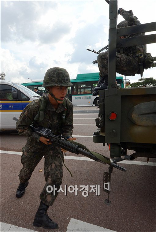 [아시아경제 윤동주 기자] 24일 서울 강서구 김포공항 쇼핑몰에서 열린 민ㆍ관ㆍ군ㆍ경 통합 독가스 테러 대비 훈련에 참가한 특수대원들이 테러범 진압 훈련을 하고 있다.윤동주 기자 doso7@<ⓒ세계를 보는 창 경제를 보는 눈, 아시아경제(www.asiae.co.kr) 무단전재 배포금지>