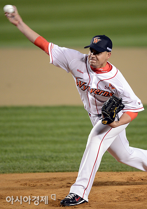 [아시아경제 정재훈 기자] 1일 오후 잠실야구장에서 열린 '2012 팔도 프로야구 한국시리즈' SK 와이번스와 삼성 라이온즈의 6차전 경기 SK 선발투수 마리오가 역투하고 있다.정재훈 기자 roze@<ⓒ세계를 보는 창 경제를 보는 눈, 아시아경제(www.asiae.co.kr) 무단전재 배포금지>