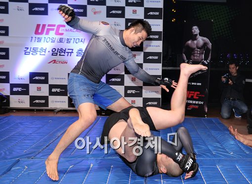 [아시아경제 송재원 기자] 이종격투기선수 임현규가 2일 오후 서울 용산 아이파크몰 E스포츠 스타디움에서 열린 수퍼액션 ‘UFC in MACAU 출정식’에 참석해 오픈 워크아웃 타임을 갖고 있다.오는 11월 10일 중국 마카오 코타이 아레나에서 열리는 ‘UFC in MACAU’에 웰터급 김동현과 임현규가 동반 출전, 각각 파울로 티아고(브라질), 데이빗 미첼(브라질)과 격돌한다.이날 대한민국을 대표하는 섹시 아이콘 강예빈이 ‘UFC in MACAU’에서 한국 최초로 UFC 옥타곤걸로 전격 데뷔해 눈길을 끌었다.송재원 기자 sunny@<ⓒ아시아경제 & 스투닷컴(stoo.com)이 만드는 온오프라인 연예뉴스>