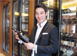 발디비에소 싱글빈야드 시라 와인 론칭쇼에서 와인모델 이왕희씨가 와인을 들고 포즈를 취하고 있다.