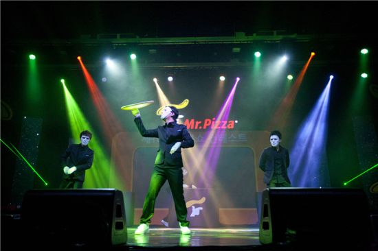 [아시아경제 오주연 기자]글로벌외식문화기업 MPK그룹의 미스터피자는 지난 3일 전속모델인 2PM과 함께하는 ‘제10회 미스터피자 도우쇼 콘테스트’를 성황리에 마쳤다고 4일 밝혔다.올해 10회를 맞는 이 행사는 도우쇼 콘테스트를 통해 미스터피자의 수타 피자를 생생하게 경험하고 소통할 수 있도록 기획됐으며 특히 이날 미스터피자 전속모델인 2PM이 특별 출연해 깜짝콘서트 무대를 선보여 4000여명이 넘는 고객들의 뜨거운 호응을 얻었다.개그맨 유세윤의 사회로 진행된 도우쇼 결승전에서는 국내 400개가 넘는 미스터피자 매장에서 진행된 예선전을 거쳐 선발된 도우쇼, 피자박스 접기의 달인들이 화려한 화려한 퍼포먼스를 펼쳤으며, 국내 유일의 도우쇼 전문팀인 미스터피자 드림팀의 라이브 도우쇼 공연도 진행됐다.또한 이번 행사에서는 미스터피자의 실제 주방을 배경으로 직접 피자 돌리는 모습 사진 촬영하기, 직접 도우를 만지면서 돌려보기, 미피(미스터피자)송 배우기를 비롯해 마노핀의 수제 머핀 만들기 체험 등 다양하게 브랜드를 체험할 수 있는 기회가 제공되어 고객들의 큰 호응을 얻었다.김상호 마케팅본부장은 “이번 도우쇼 콘테스트는 4000여명의 고객을 초청, 전속모델인 2PM 특별 무대까지 선보이는 다채로운 페스티벌로 구성되어 고객들의 만족도가 매우 높았다”고 전했다.오주연 기자 moon170@<ⓒ세계를 보는 창 경제를 보는 눈, 아시아경제(www.asiae.co.kr) 무단전재 배포금지>
