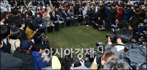 [아시아경제 최우창 기자]6일 서울 중구 시청앞 광장에서 열린 전국수산인 한마음 전진대회가 열린 가운데 대선 후보인 박근혜 새누리당 후보, 문재인 민주통합당 후보, 안철수 무소속 후보가 참석, 취재들에 둘러싸여 있다.최우창 기자 smicer@<ⓒ세계를 보는 창 경제를 보는 눈, 아시아경제(www.asiae.co.kr) 무단전재 배포금지>