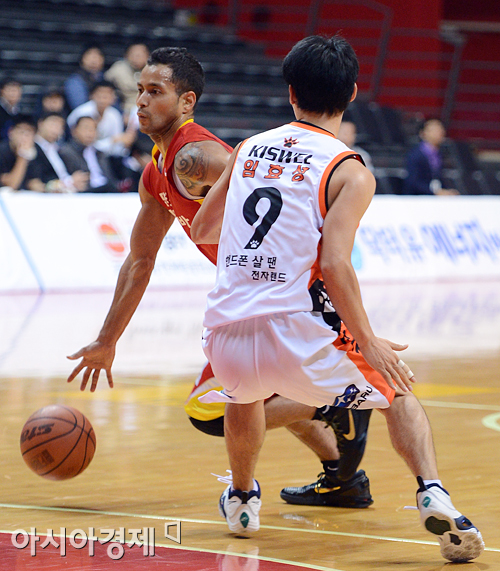 [고양=아시아경제 정재훈 기자] 7일 오후 고양실내체육관에서 열린 '2012~2013 KB국민카드 프로농구' 고양 오리온스와 인천 전자랜드 엘리펀트의 경기에서 오리온스 전태풍이 전자랜드 임효성을 피해 드리블하고 있다.정재훈 기자 roze@<ⓒ세계를 보는 창 경제를 보는 눈, 아시아경제(www.asiae.co.kr) 무단전재 배포금지>
