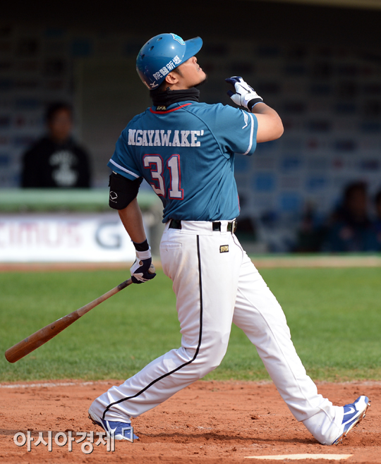[부산=아시아경제 정재훈 기자] 8일 오후 부산 사직야구장에서 열린 '마구매니저 아시아시리즈 2012' 라미고 몽키스와 차이나 스타즈의 경기 3회초 무사 1루 상황에서 린즈셩이 중견수 뒤 투런 홈런을 치고 있다.정재훈 기자 roze@<ⓒ세계를 보는 창 경제를 보는 눈, 아시아경제(www.asiae.co.kr) 무단전재 배포금지>
