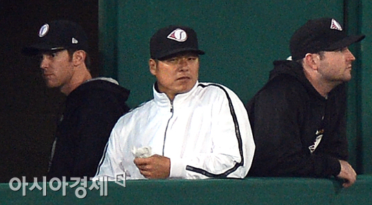 [부산=아시아경제 정재훈 기자] 8일 오후 부산 사직야구장에서 열린 '마구매니저 아시아시리즈 2012' 롯데 자이언츠와 퍼스 히트의 경기. 구대성이 불펜에서 핫팩을 쥐고 경기를 지켜보고 있다.정재훈 기자 roze@<ⓒ세계를 보는 창 경제를 보는 눈, 아시아경제(www.asiae.co.kr) 무단전재 배포금지>
