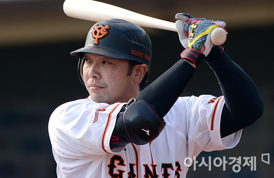 [부산=아시아경제 정재훈 기자] 요미우리 아베 신노스케가 9일 오후 부산 사직야구장에서 열린 '마구매니저 아시아시리즈 2012' 요미우리 자이언츠와 퍼스히트의 경기 7회말 무사 1,3루 상황에서 대타로 나와 투구를 기다리고 있다.정재훈 기자 roze@<ⓒ세계를 보는 창 경제를 보는 눈, 아시아경제(www.asiae.co.kr) 무단전재 배포금지>