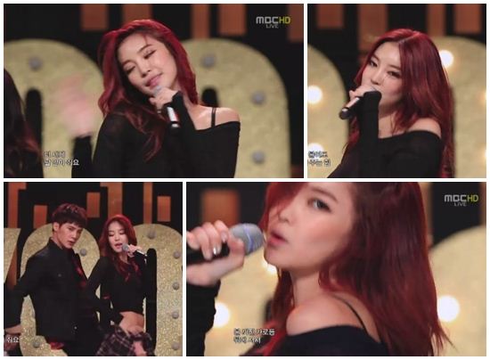 [아시아경제 최준용 기자]NS윤지가 치명적인 섹시함을 어필하며 남성 팬들의 마음을 사로잡았다. NS윤지는 10일 오후 방송한 MBC '쇼!음악중심'에 출연해 신곡 '이프 유 러브 미(IF YOU LOVE ME)' 무대를 선사했다.그는 이날 완벽한 바디라인이 돋보이는 의상으로 여성적 매력을 한껏 발산했다. 특히 NS윤지는 달마시안 멤버 사이먼과 함께 무대에 올라 치명적인 섹시함을 어필했다.신곡 '이프 유 러브 미'는 백지영의 '목소리', 씨스타의 '러빙유', 허각과 지아의 'I Need You' 등 올해 수많은 히트곡을 만들어낸 프로듀서팀 이단옆차기의 곡이다.이 곡은 남녀간의 사랑을 연상시키는듯한 강렬한 힙합리듬과 섬세하고 감성적인 피아노 테마의 극적인 조화가 압권이라는 평이다.한편 이날 ‘쇼!음악중심’에는 미쓰에이, 현아, 보이프렌드, B.A.P, 쥬얼리, 노을, 별, 노지훈, 100%, AOA, NS윤지, BIGSTAR, She'z, FIESTAR, 크레이지노, SMASH, A-Prince, 크레용팝 등이 참여해 멋진 무대를 꾸몄다.최준용 기자 cjy@<ⓒ아시아경제 & 스투닷컴(stoo.com)이 만드는 온오프라인 연예뉴스>