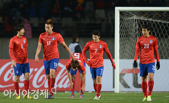 [아시아경제 전성호 기자]최강희 감독이 이끄는 한국 축구 국가대표팀이 14일 오후 경기도 화성종합경기타운에서 열린 호주와의 친선경기에서 1-2로 역전패했다. 한국은 이동국이 최전방 원톱, 황진성(포항)이 섀도 스트라이커로 각각 출전했다. 이근호(울산)와 이승기(광주)는 좌우 측면을 지원했다. 하대성(서울)과 박종우(부산)는 중원에서 호흡을 맞췄다. 수비진은 김영권(광저우), 정인환(인천), 김기희(알 사일리아), 신광훈(포항)로 구성됐고, 김영광(울산)이 오랜만에 수문장으로 나섰다.한국은 초반 이근호와 이승기의 활발한 스위칭을 앞세워 공격을 주도했다. 선제골 역시 한국의 몫이었다. 전반 12분 역습 상황에서 오른쪽 측면의 신광훈이 단번에 전방으로 롱패스를 찔러줬다. 공을 잡은 이승기가 한 차례 드리블 뒤 날카로운 오른발 크로스를 올렸고, 이를 페널지 지역 정면에 있던 이동국이 침착한 오른발 발리 슈팅으로 마무리하며 골망을 흔들었다. 이동국의 A매치 통산 30호골(94경기)이었다.기세가 오른 한국은 호주를 줄기차게 밀어붙였다. 전반 17분 황진성은 아크 오른쪽 부근에서 예리한 왼발 프리킥을 날렸다. 1분 뒤에는 하대성이 아크 정면에서 대포알 같은 중거리 슈팅으로 호주 골문을 위협했다.가슴 철렁한 순간도 있었다. 전반 23분 이근호는 상대의 거친 태클에 오른발을 밟히며 쓰러졌다. 결국 이근호는 한 차례 슈팅 시도 후 전반 27분 김형범(대전)과 교체됐다.한국은 리드를 지키지 못한 채 전반 44분 호주에게 만회골을 허용했다. 수비진이 순간적으로 페널티지역 오른쪽 지역에 있던 루카비츠야(마인츠)를 놓친 것이 화근이었다. 동료의 패스를 받은 루카비츠야는 침착한 왼발 슈팅으로 골망을 갈랐다. 결국 두 팀은 1-1로 전반전을 마쳤다.후반 시작과 함께 한국은 신광훈·하대성·정인환·김영권을 빼고 김창수(부산)·최재수(수원)·고명진(서울)·황석호(히로시마)를 각각 투입했다. 두 팀은 한치의 양보 없는 치열한 공방전을 펼쳤다. 후반 9분 박종우가 페널티 지역 오른쪽에서 오른발 슈팅을 날렸지만 슈워쳐(풀럼) 골키퍼의 선방에 막혔다. 한국은 후반 14분 김형범을 빼고 김신욱(울산)을 투입하며 공격의 고삐를 당겼다. 후반 25분 황진성과 닐(알 자지라)이 각각 헤딩 슈팅을 날렸지만 모두 골키퍼 정면을 향했다. 한국은 수차례 슈팅을 시도했지만 좀처럼 골문을 열지 못했다. 후반 30분 이동국이 다시 한번 날카로운 왼발 슈팅을 날렸지만 수비수 몸 맞고 나왔고, 후반 32분 김신욱이 헤딩 슈팅을 시도했지만 오히려 파울을 범하며 경고를 받았다.오히려 한국은 후반 막판 집중력을 잃었다. 후반 41분 황석호의 패스 미스로 실점 위기를 자초했고, 1분 뒤에는 역전골마저 허용했다. 코너킥 상황에 이은 혼전 상황에서 바발리(레드스타 베오그라드)의 슈팅이 김영광 골키퍼 몸 맞고 흘렀고, 이를 공격에 가담했던 수비수 코니(전남)가 가볍게 밀어넣었다.한국은 추가 시간 4분이 주어진 가운데 막판 공세를 펼쳤다. 하지만 경기 종료 직전 고명진의 슈팅마저 하늘로 향했다. 결국 한국은 1-2로 아쉬운 패배를 받아들여야 했다.전성호 기자 spree8@<ⓒ세계를 보는 창 경제를 보는 눈, 아시아경제(www.asiae.co.kr) 무단전재 배포금지>