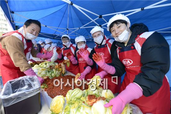 [아시아경제 조슬기나 기자] 기아자동차는 16일 서초지역 소외계층 1200여 가구에 직접 담근 김장김치 4000여 포기(12t, 4500만원 상당)를 배달하는 ‘행복한 겨울愛 사랑 가득 김치 나누기’ 행사를 가졌다고 16일 밝혔다.이 날 기아차 본사 임직원과 지역 어머니회 등 자원 봉사자 90여명은 서울시 서초구 소재 우면종합사회복지관에서 4000여 포기의 김장김치를 담궈, 이 지역의 소외 계층 가정에 직접 배송하는 시간을 가졌다.특히 행사에 사용된 배추 전량을 ‘1사 1촌’ 결연마을인 강원도 횡성군 월현리에서 구입함으로써 농촌도 지원하고, 소외계층과 사랑도 나누는 일석이조의 공헌활동을 펼쳤다.기아차 관계자는 “결연마을에서 공수한 배추로 김치를 담그니 보람도 2배”라며, “앞으로도 지역공동체와 끈끈한 유대관계를 맺고 어려운 이웃들을 위한 봉사활동을 지속적으로 펼칠 것”이라고 말했다.조슬기나 기자 seul@<ⓒ세계를 보는 창 경제를 보는 눈, 아시아경제(www.asiae.co.kr) 무단전재 배포금지>