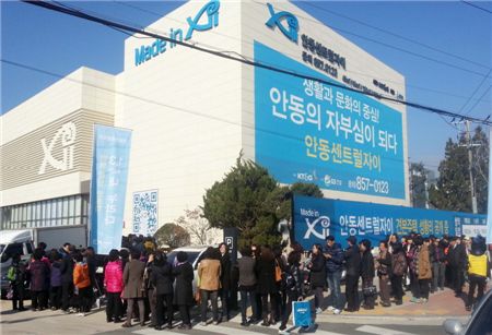 GS건설의 안동센트럴자이 견본주택 내방객 모습