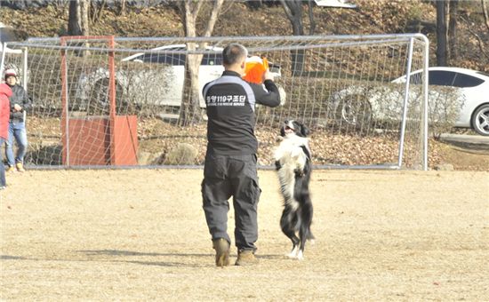 [아시아경제 정종오 기자]소방방재청은 20일 경기도 남양주시 별내동에 있는 중앙119구조단에서 '전국인명구조견 경진대회'를 개최했다. 경진대회에서 인명구조견이 시범을 보이고 있다. 정종오 기자 ikokid@<ⓒ세계를 보는 창 경제를 보는 눈, 아시아경제(www.asiae.co.kr) 무단전재 배포금지>