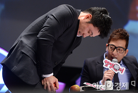 [아시아경제 정재훈 기자] 삼성 라이온즈 오승환이 20일 오후 서울 고려대 화정체육관에서 열린 토크 콘서트 '열정樂서'에서 사회자의 제안에 사과 쪼개는 시범을 보이고 있다.정재훈 기자 roze@<ⓒ세계를 보는 창 경제를 보는 눈, 아시아경제(www.asiae.co.kr) 무단전재 배포금지>