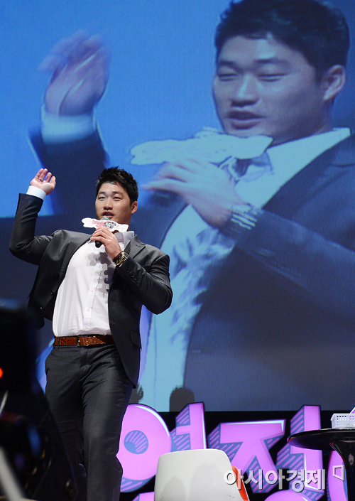 [아시아경제 정재훈 기자] 삼성 라이온즈 오승환이 20일 오후 서울 고려대 화정체육관에서 열린 토크 콘서트 '열정樂서'에서 투구폼 시범을 보이고 있다.정재훈 기자 roze@<ⓒ세계를 보는 창 경제를 보는 눈, 아시아경제(www.asiae.co.kr) 무단전재 배포금지>