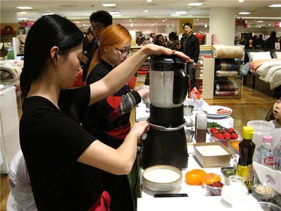 [아시아경제 이지은 기자] 주방 브랜드 쿠진아트(Cuisinart)는 지난 18일 현대백화점 무역센터점에서 자사의 믹서기 '쿡블랜더'로 만드는 요리 경연대회의 한국 본선을 개시했다고 21일 밝혔다. 이 대회는 끓이는 기능을 추가한 믹서기 쿡블랜더를 활용해 본인만의 레시피를 직접 만드는 요리 경연으로, 본선 최종 우승팀은 한국대표로 아시아 파이널에 출전한다. 본선에 진출한 8팀의 도전자들은 라이스 푸딩, 사찰 보양탕, 요거트 케이크, 고구마 경단, 꽃잎송편 등 이색 요리를 선보였다. 쿠진아트 관계자는 "끓이는 기능이 있는 신개념 믹서기 쿡블랜더를 이용한 요리대결인 만큼 다양한 아이디어가 담긴 요리가 출품됐다"며 "한국의 전통적인 맛을 보여줄 수 있는 요리가 좋은 평가를 받을 것"이라고 말했다. 경연대회 최종 우승자는 30일 쿠진아트 홈페이지(www.cuisinart.co.kr)를 통해 발표된다.이지은 기자 leezn@<ⓒ세계를 보는 창 경제를 보는 눈, 아시아경제(www.asiae.co.kr) 무단전재 배포금지>